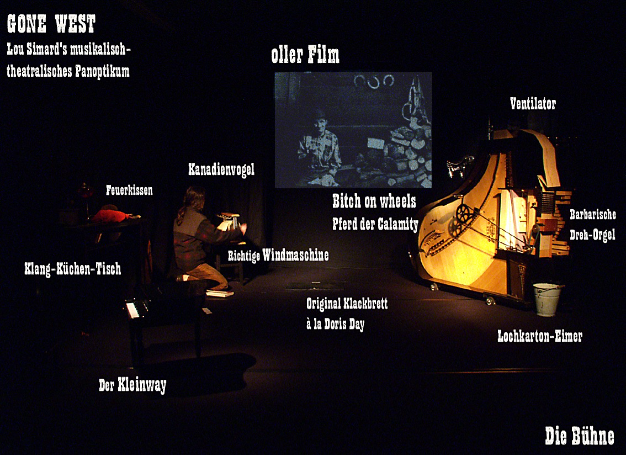 Bühnen-Setup der Kammeroper »Gone West«, rechts im Bild die »Bitch on Wheels«, Foto © 2002 by AHM, dacapo